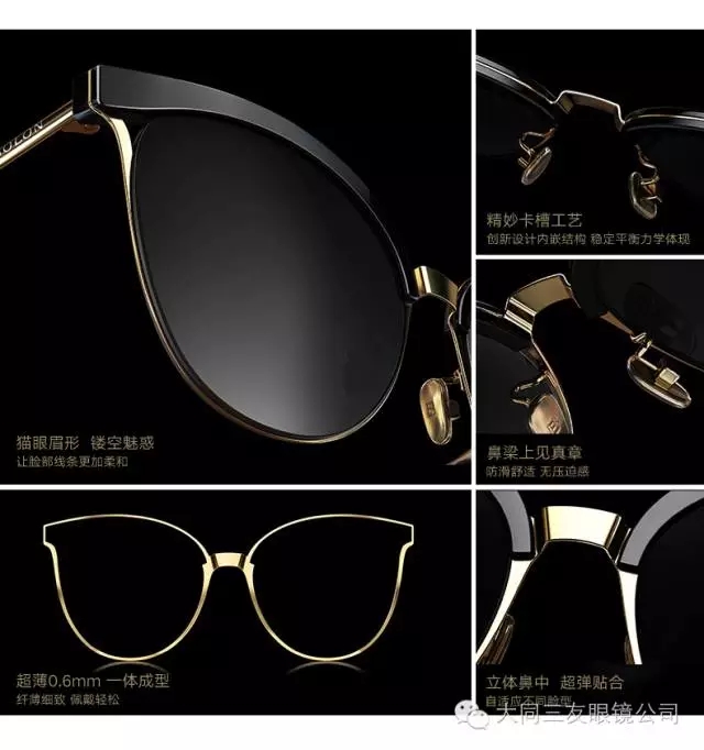 镂空猫眼设计,多色彩搭配、50年代猫眼款式,时尚优雅;多色炫彩镜片,个性潮流;轻盈细腻金属镜腿,简约质感。
