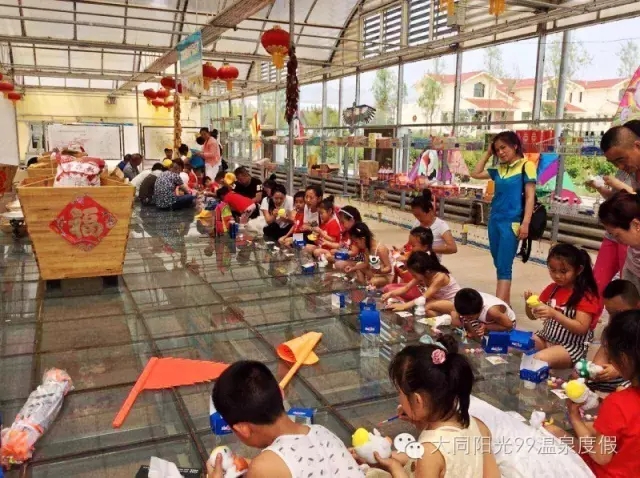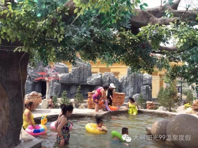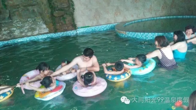 「温泉及水上游乐」 在亲子互动活动结束后,家长老师和孩子们来到了阳光99的温泉会所,一同体验了大同唯一的室外养生温泉,在这里孩子们更是如鱼得水!