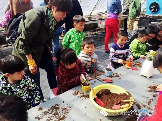 孩子们在老师的带领下排着整齐的队列,喊着响亮的口号,来到了阳光99温泉养生度假区,开始了今天的愉快行程。