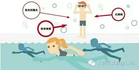 “游泳池眼病”俗称红眼病,是由病毒引起的。发病开始时感到眼内痒、刺痛,有异物感,同时伴有畏光、流泪,分泌物呈水样或黏液状,之后会出现眼睑红肿,球结膜充血明显,约有半数患者有点状或片状出血,严重者会出现视力下降。部分病人在起病时,有头痛、发热、流涕、咽喉疼痛等上呼吸道感染症状。