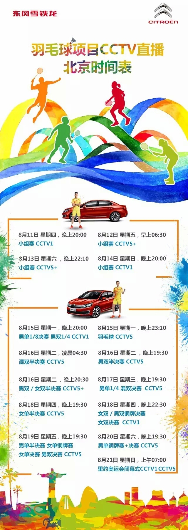 即使此战有着多种客观因素影响,中国羽毛球队员们仍在积极备战。本届赛事安排中,羽毛球项目的比赛将于8月11日开赛,于当地时间每天早晨08:30开始,所有羽毛球项目CCTV直播清单马上呈现: