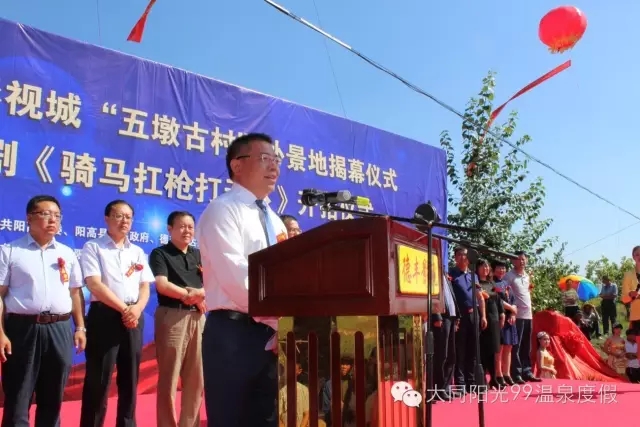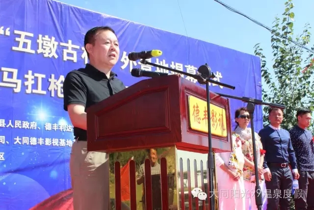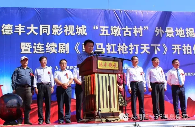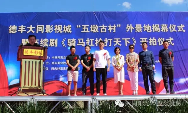 8月30日,适逢2016山西省旅游发展大会在大同市隆重开幕之际,北京德丰利达集团旗下的大同德丰影视基地有限公司项目德丰大同影视城“五墩古村”外景地揭幕暨连续剧《骑马扛枪打天下》开拍仪式在阳高县罗文皂镇五墩村隆重举行。活动由中共阳高县委、阳高县人民政府、德丰利达集团共同主办,德丰影业股份有限公司、大同德丰影视基地有限公司、北京中泰弘影视文化发展有限公司联合承办,阳光99温泉旅游度假区全程协办。