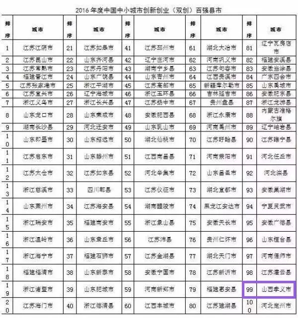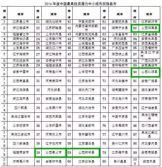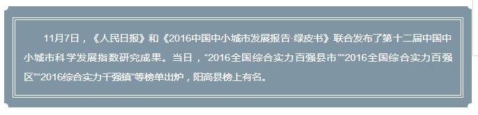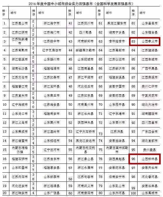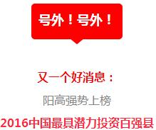2016年全国综合实力百强县、百强区、千强镇榜单出炉——阳高县榜上有名