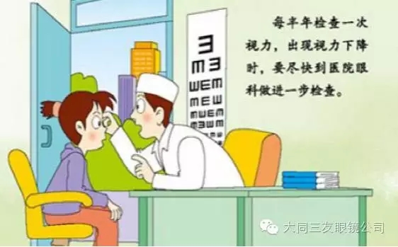 许多家长在给近视患儿配眼镜后,就不再带其去医院做检查了。这种做法是错误的。临床实践证实,经常让戴眼镜的近视患儿去医院复查具有以下好处:1.能明确患儿原有的假性近视是否已被治好;2.能明确患儿的混合性近视中的假性近视是否已被治好;3.能明确患儿原有的真性近视是否发展。因此,家长们在近视患儿戴上眼镜后,应经常带其去医院复查,每年至少应复查一次,这样才能及时了解近视患儿的病情变化。另外,对于没有患近视的学龄儿童,家长们也应经常带其去医院检查眼睛。因为视力正常的学龄儿童若不坚持科学用眼的话,其视力也可能下降。
