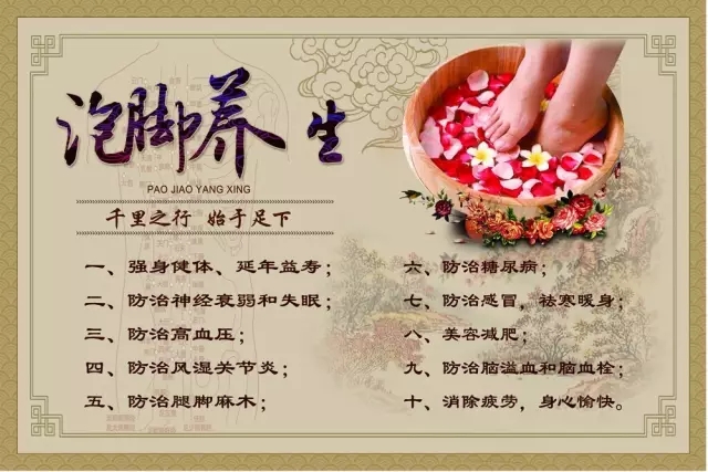 早在几千年前,中医就发现了“足是人之根,泡脚治全身”的妙处。神医华佗曾著《足心道》中指出:“春天泡脚,升阳固脱;夏天泡脚,暑湿可祛;秋天泡脚,肺润肠濡;冬天泡脚,丹田温灼。” 足底有136个穴位反射区,对应人体的五脏六腑各个器官。一代美女杨贵妇经常靠足浴来养颜美容,大文豪苏东坡每晚都运用足浴来强身健体,可见养足在中华养生保健历史中占有举足轻重的地位。