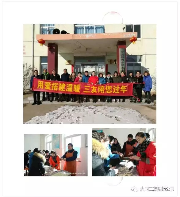 2017春节刚过,大雪初停,天气异常寒冷,三友眼镜公司的高董事长和曹经理携员工一行12人驱车来到左云县青少年未来发展促进会,亲切看望慰问驻守在这里的青年志愿者,领导带头鼓励大家坚持梦想,弘扬志愿精神,让志愿者感受到企业的温暖。